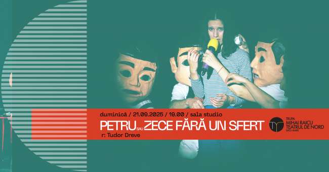 Duminică 21 septembrie, de la ora 19, Sala Studio se redeschide pentru spectacolul PETRU SAU ZECE FĂRĂ UN SFERT, un spectacol manifest a cărui producție a fost realizată în cadrul proiectului FOCUS DRAMA, ediția a III-a.